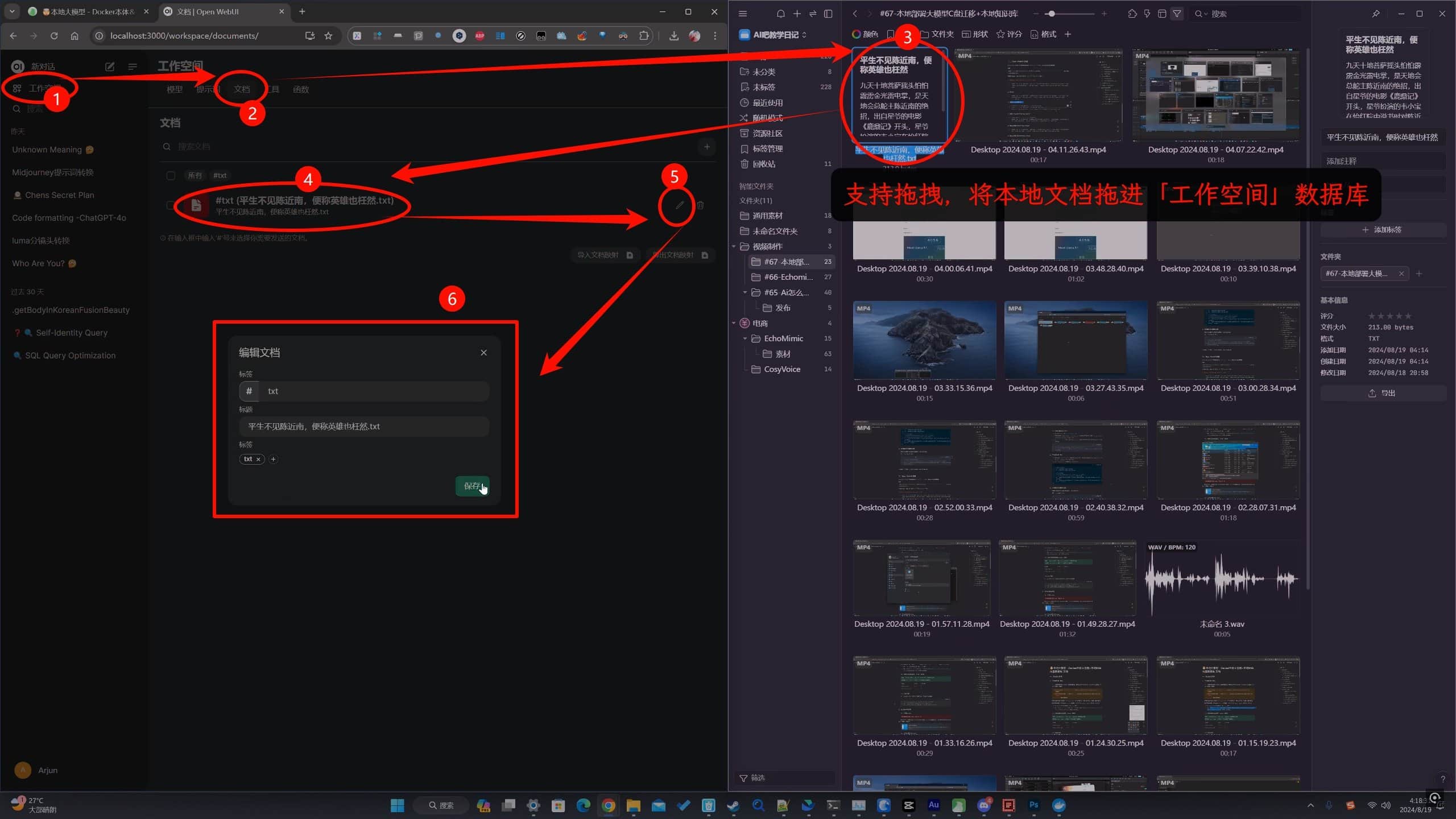 选择工作空间→选择文档tab,+号上传你的文档,别忘了给你的文档命名和打上标签。