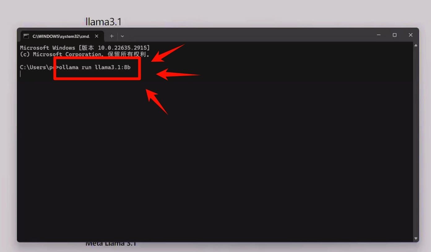 我们在装好ollama后,打命令行窗口,使用下面命令下载Llama 3.1 8b: