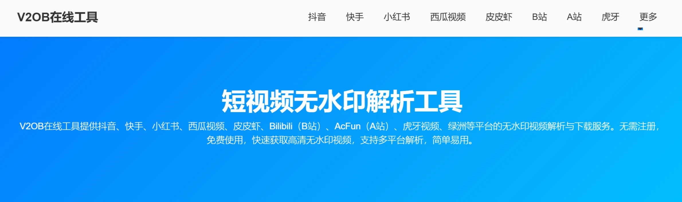 专门用于解析B站视频,可一键下载高清无水印视频,提供抖音、快手、小红书、西瓜视频、皮皮虾、Bilibili(B站)、AcFun(A站)、虎牙视频、绿洲等平台的无水印视频解析与下载服务。无需注册,免费使用,快速获取高清无水印视频。