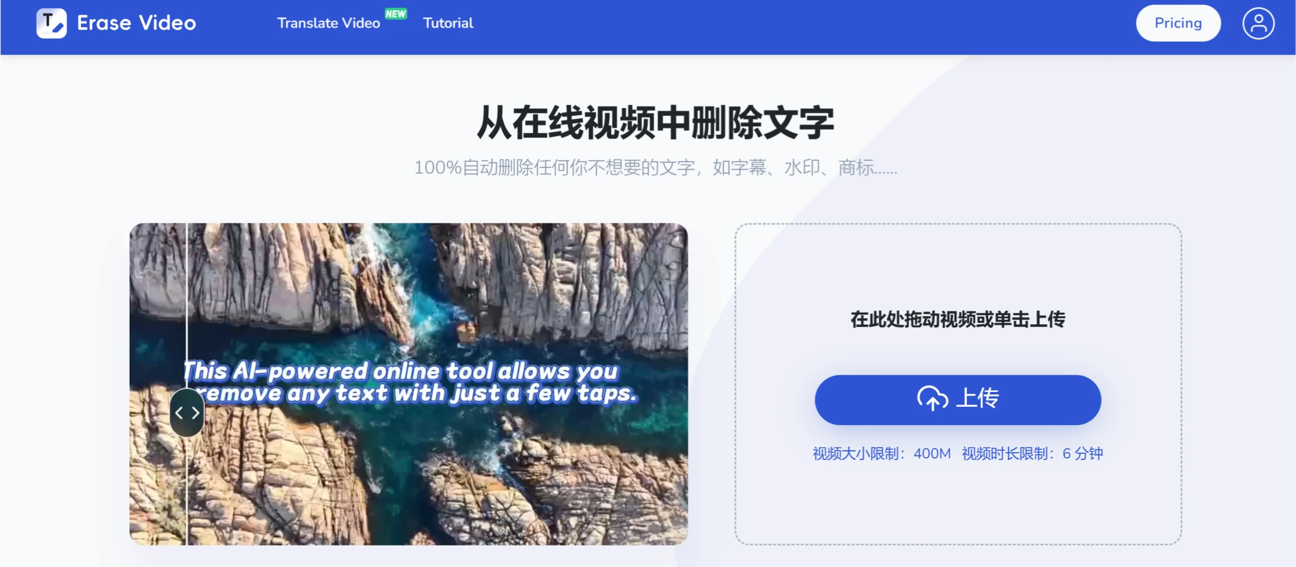 基于ai技术,可去除视频中的水印、文本和其他不需要的元素,用户只需上传视频并指定区域。